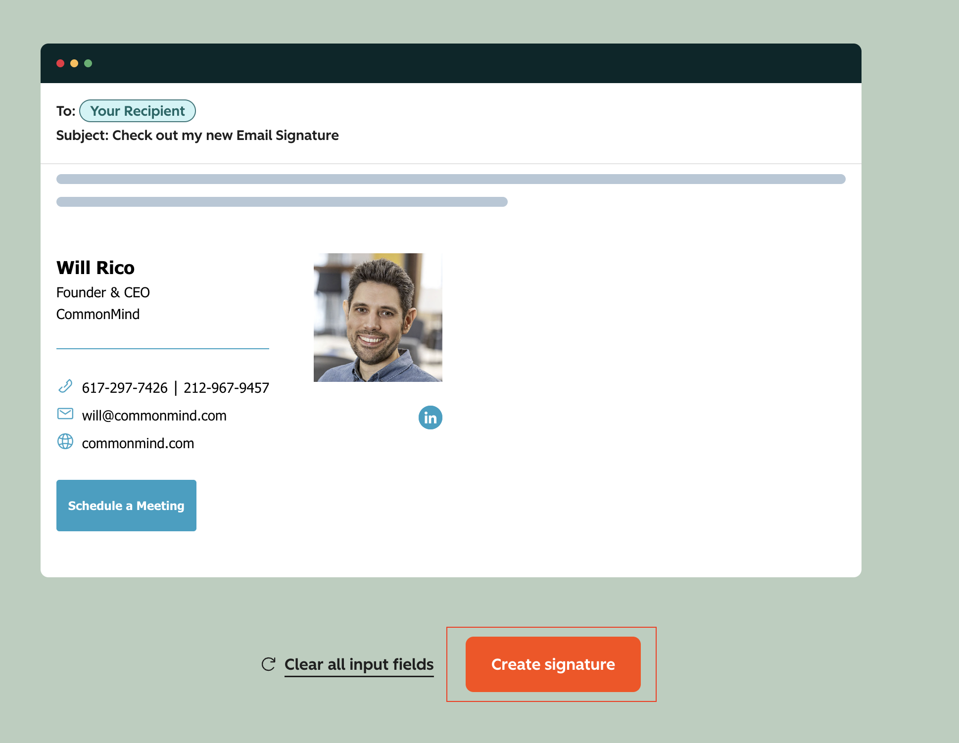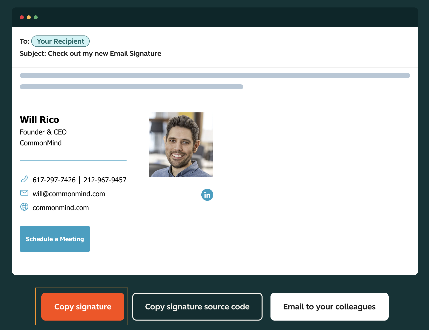 Here's a step-by-step guide on how you can customize the CommonMind email signature with your personal info