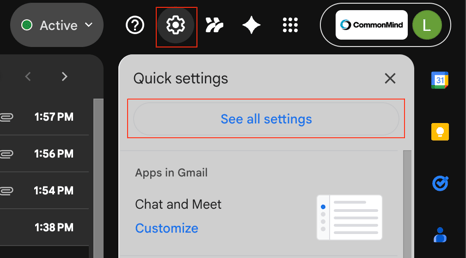 Now, go to your Gmail, click on the gear icon on the top right corner, then click on "See all settings"