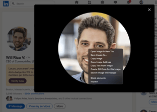 Step 2: Images - On the "Images" tab, you'll need a URL of your picture, the easiest way to get one is through your LinkedIn profile, go to your profile and click on your photo, then right click on it and go to "Open image in a new tab", copy the URL and paste it on the "Profile Picture" field.