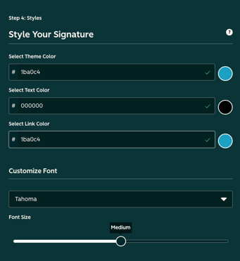 Step 4: Styles - For the first fold of the "Styles", we'll replace the first and third colors to this hex code: #1ba0c4, and change the font to Tahoma.