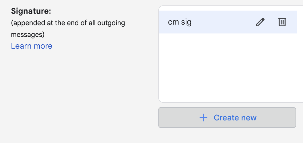 Scroll down until you find the Signature option, then click on "Create new Signature"